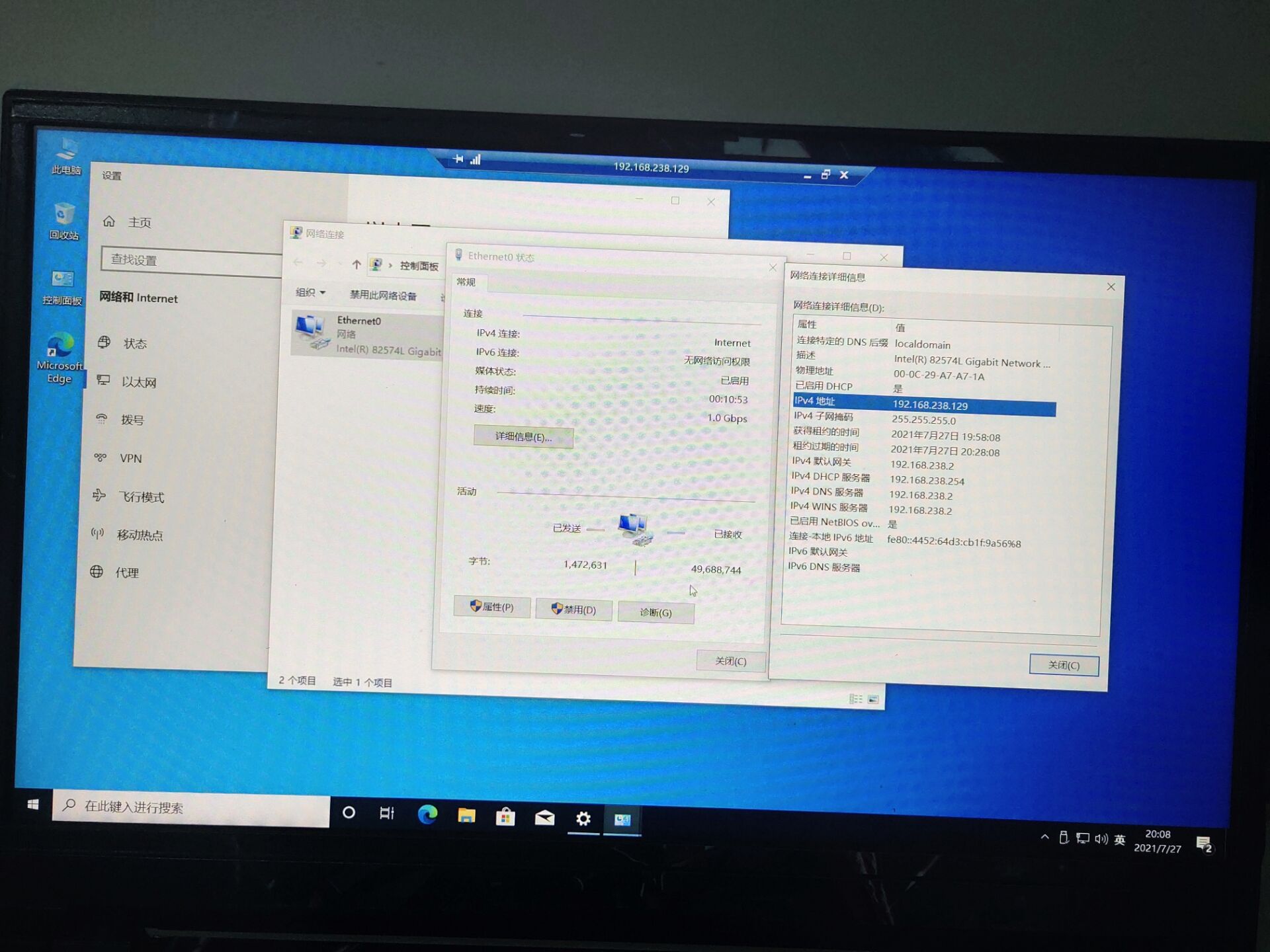 5.查看以太网的详细信息,记住其中的IPv4地址;