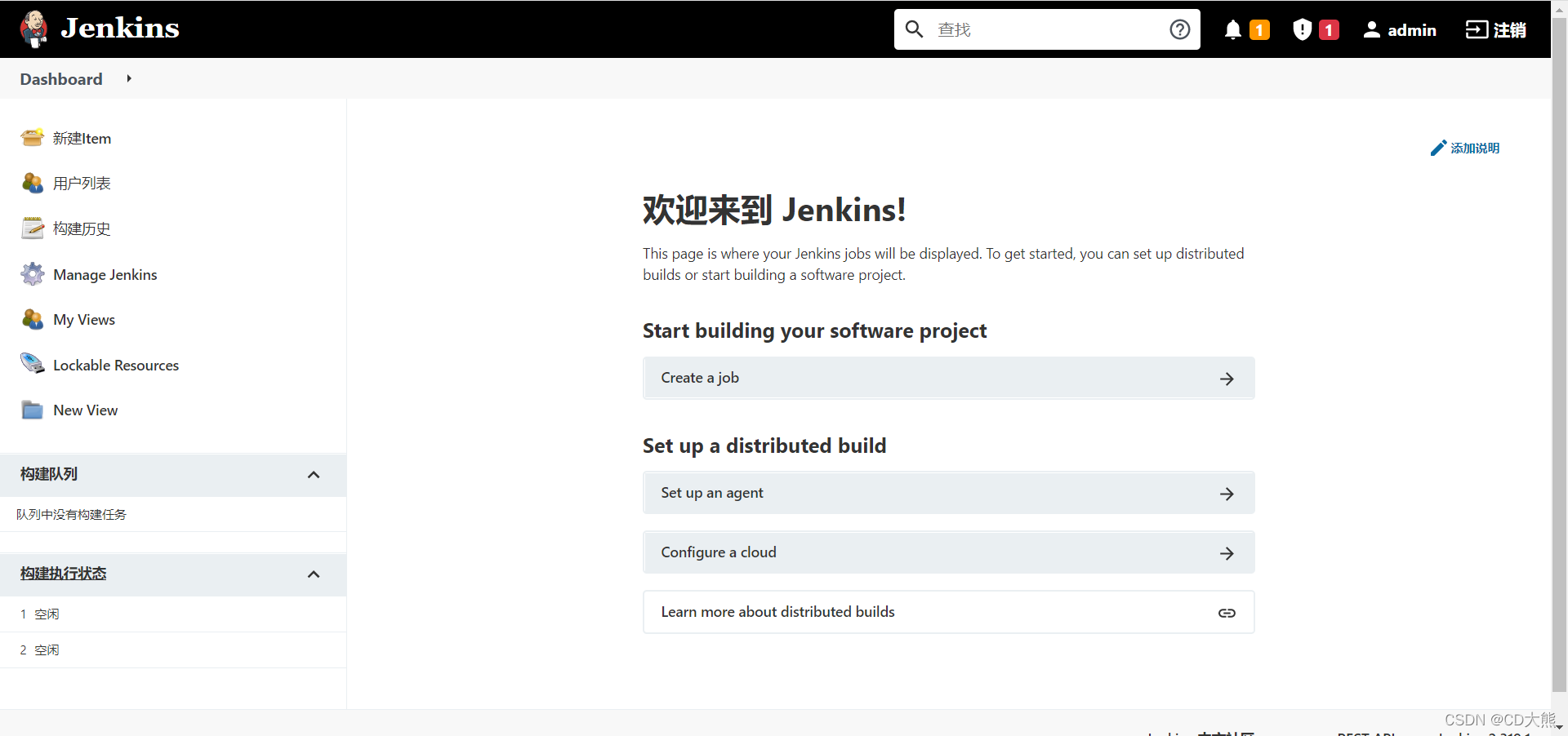 15.如图所示,这就是Jenkins的首页,至此,Jenkins已经下载安装配置完毕,尽情使用吧