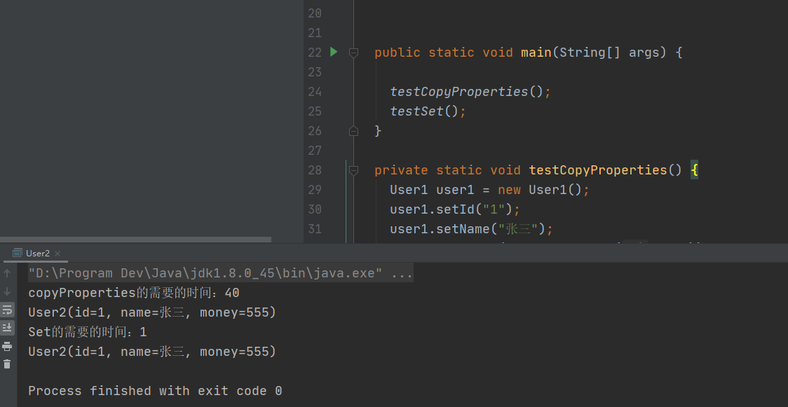 System.out.println("copyProperties的需要的时间:" + (end - start));
