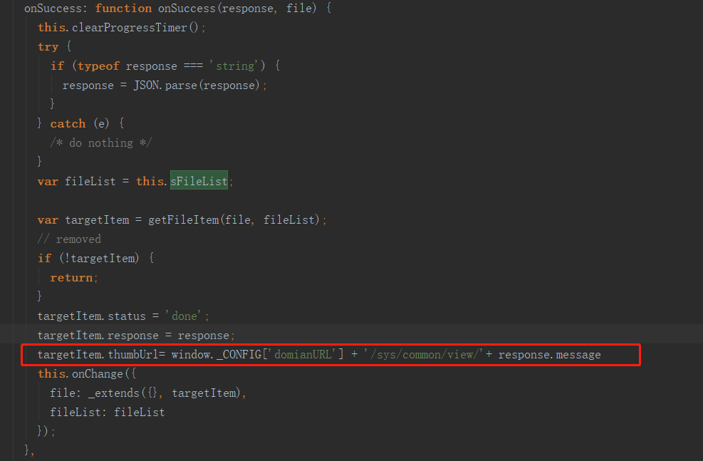 targetItem.thumbUrl= window._CONFIG[‘domianURL’] + ‘/sys/common/view/’+ response.message,为了防止预览时由于base64这个字符串太大了,造成浏览器卡顿,把url换成服务器地址即可,同时也给没有生产base64的文件添加上了url