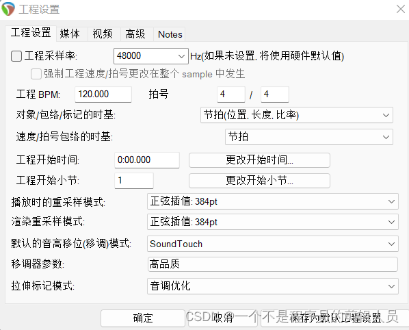 保存工程后可以设置工程设置,以下的参数和设置(或者说默认设置)基本上就可以试用于基本需求。