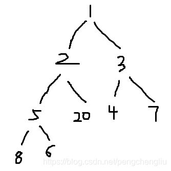 首先输出的是:1 2 3 5 20 4 7 8 6 。