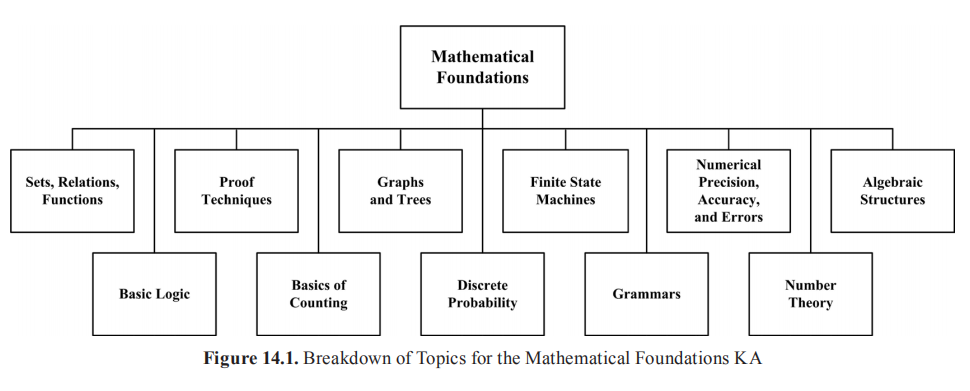 软件专业人士以程序为生。在一种非常简单的语言中,一个人只能为遵循一个易于理解的、无歧义的逻辑的东西编程。数学基础知识区(KA)帮助软件工程师理解这种逻辑,而这种逻辑又被翻译成编程语言代码。数学,这是在这个KA的主要重点是非常不同于典型的算术,在那里处理和讨论数字。逻辑和推理是软件工程师必须解决的数学本质。