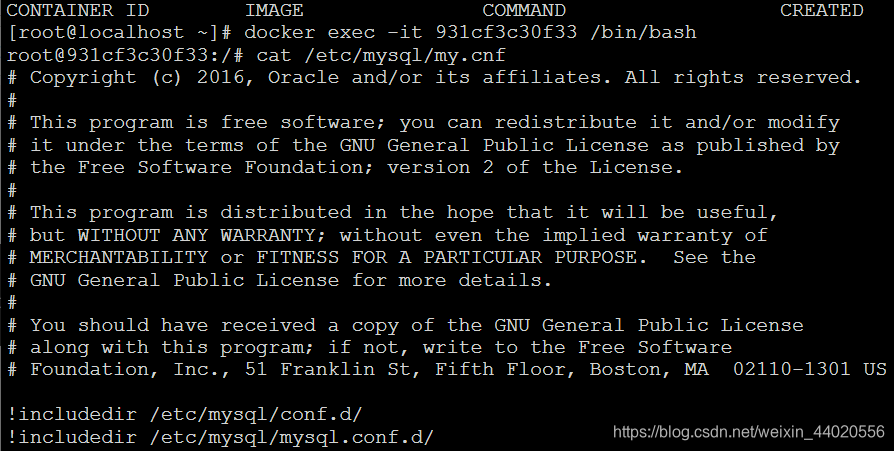 cat /etc/mysql/my.cnf 当前显示的my.cnf就是我们要修改的配置文件