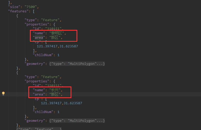生成完的json文件只有area,并没有name,但是地图里面是根据name展示的
