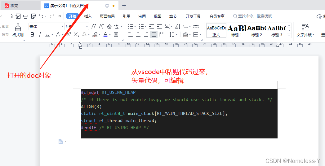 然后将代码粘贴进doc文档对象中,最好是从vscode中复制出来的,本身会带代码高亮格式。