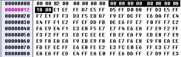 使用FlexHex打开一张TGA格式的文件,信息如下(TGA文件格式中字段的字节存储次序采用Little-Endian的方式,即小端在前。)