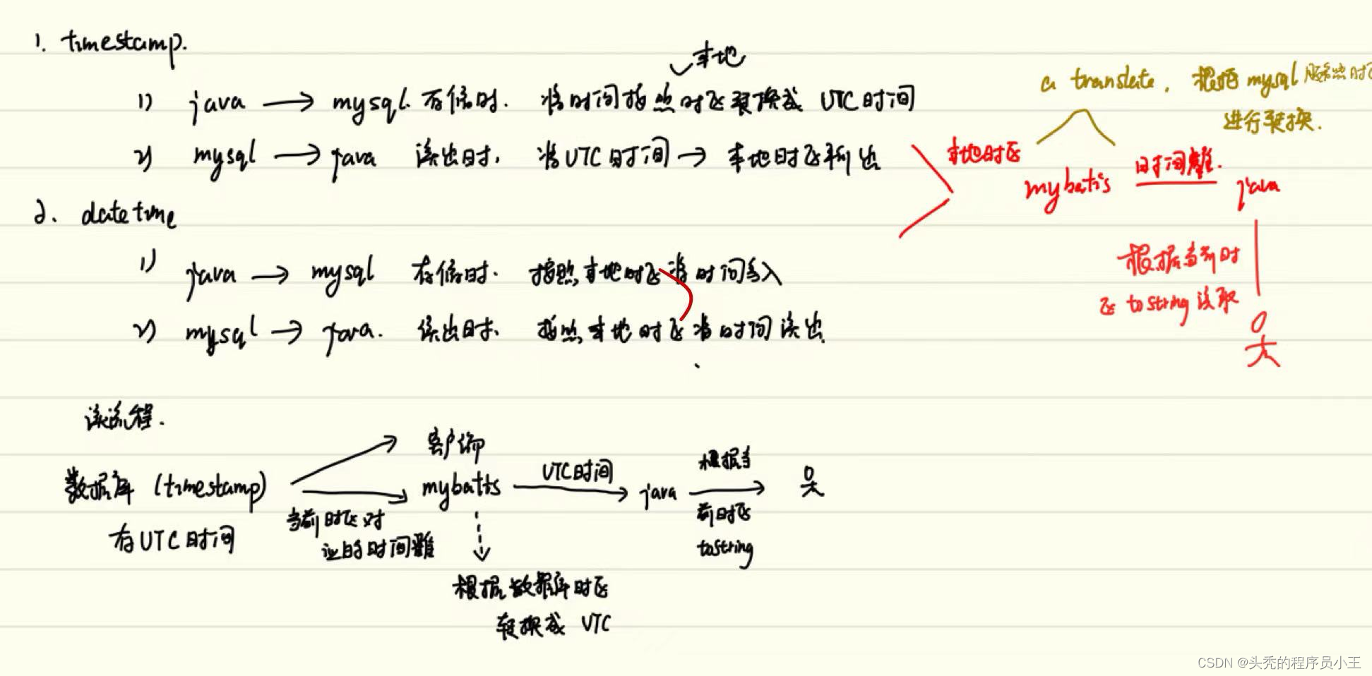 Timestamp 和时区有关,它把客户端插入的时间从当前时区转化为UTC(世界标准时间)进行存储。查询时,将其又转化为客户端当前时区进行返回。说简单点就是在不同时区,查询到同一个条记录此字段的值会不一样。timestamp类型每次读取、存入都要做时区转换,额外的性能消耗,好处是数据访问可以随时区变化