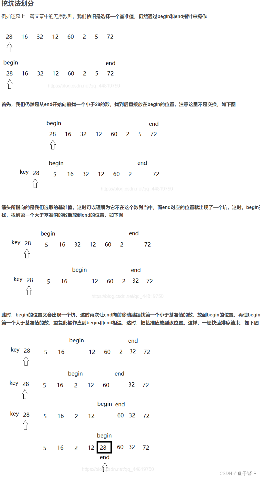 while(end>=0 && arr[end]>key){//注意:因为&&逻辑运算符具有短路特性,左端条件为假直接不成立,因此顺序不可变