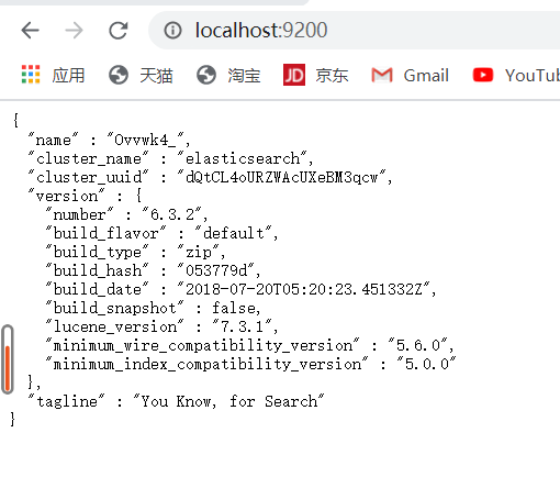下载相关版本Zip包;本次学习使用6.3.2。下载完成后,进入解压文件夹的bin文件夹,打开elasticsearch.bat文件(Window环境)。随后打开浏览器输入”localhost:9200″即可。