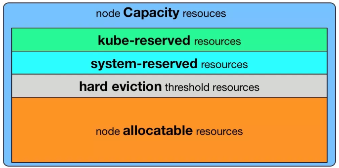 Node Allocatable Resource = Node Capacity - Kube-reserved - system-reserved - eviction-threshold