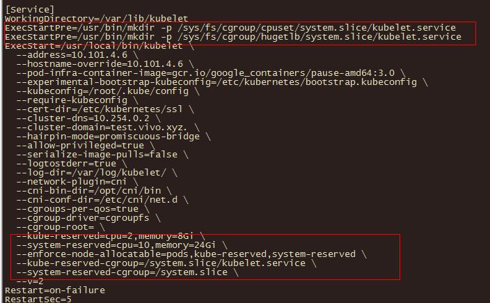 –kube-reserved-cgroup,如果你设置了–kube-reserved,那么请一定要设置对应的cgroup,并且该cgroup目录要事先创建好,否则kubelet将不会自动创建导致kubelet启动失败。比如设置为kube-reserved-cgroup=/kubelet.service 。