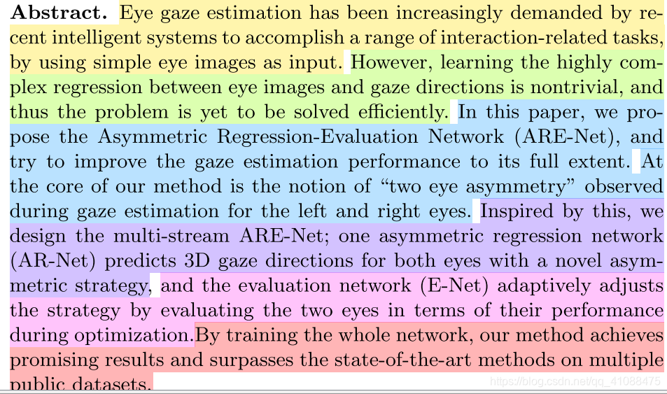 (2)我们观察到“双眼的非对称性(我的理解是:双眼视线预测的非对称性)”,在此基础上我们提出了评估指导的非对称回归的机制。