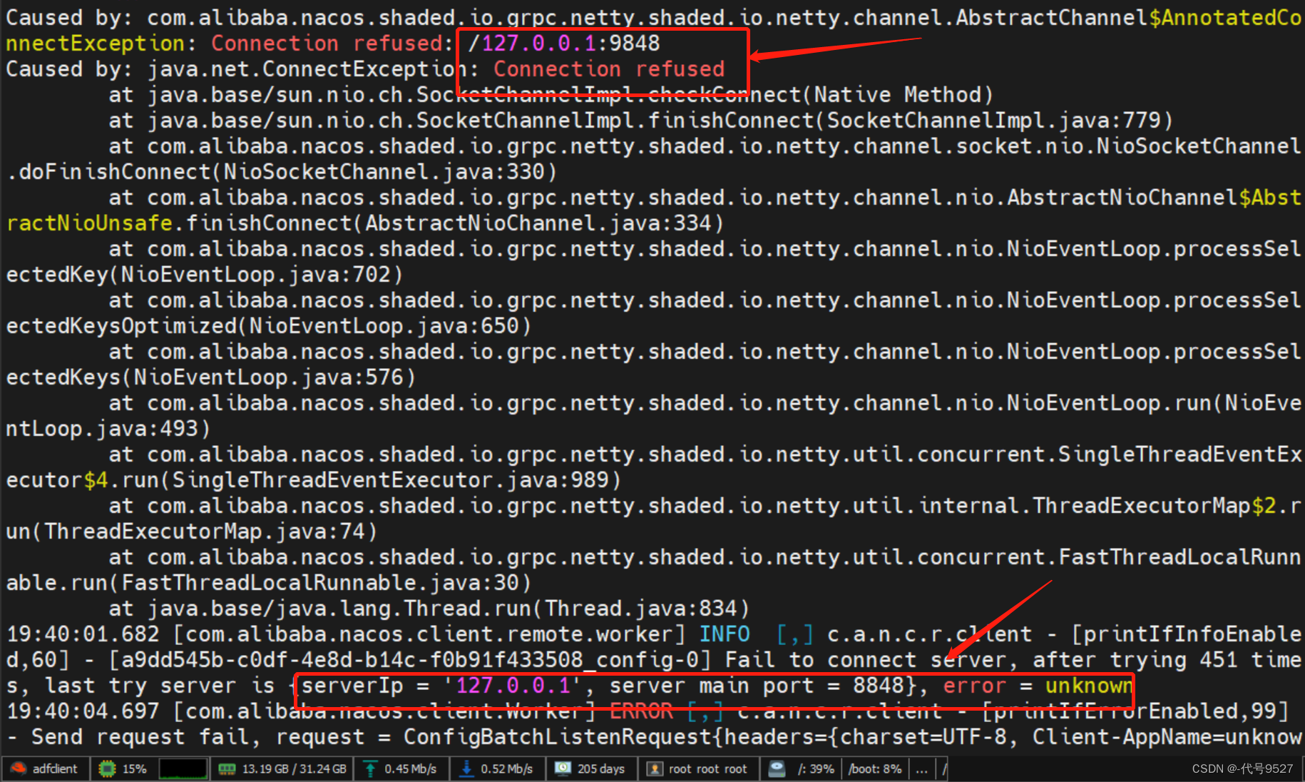 ,我一直记得discovery既是服务注册,也是服务发现。所以在nacos不再做配置管理后,我就直接删掉了spring.cloud.nacos.config.server-addr,导致没了服务注册地址,默认用了localhost