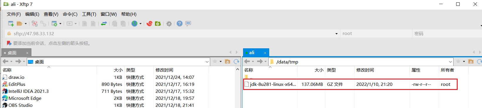 我这里用的是xftp,一个月可能用到一次的好用软件