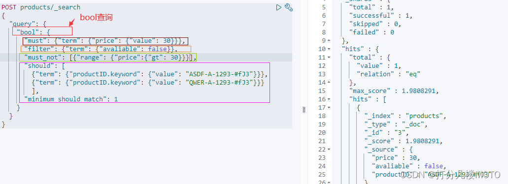 利用bool查询解决结构化查询—包含而不是相等的条件(问题可以点击这里查看)