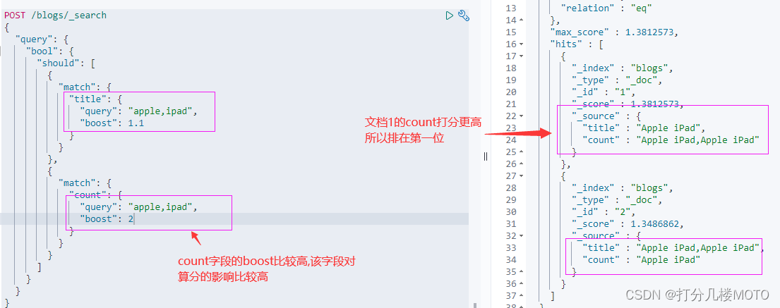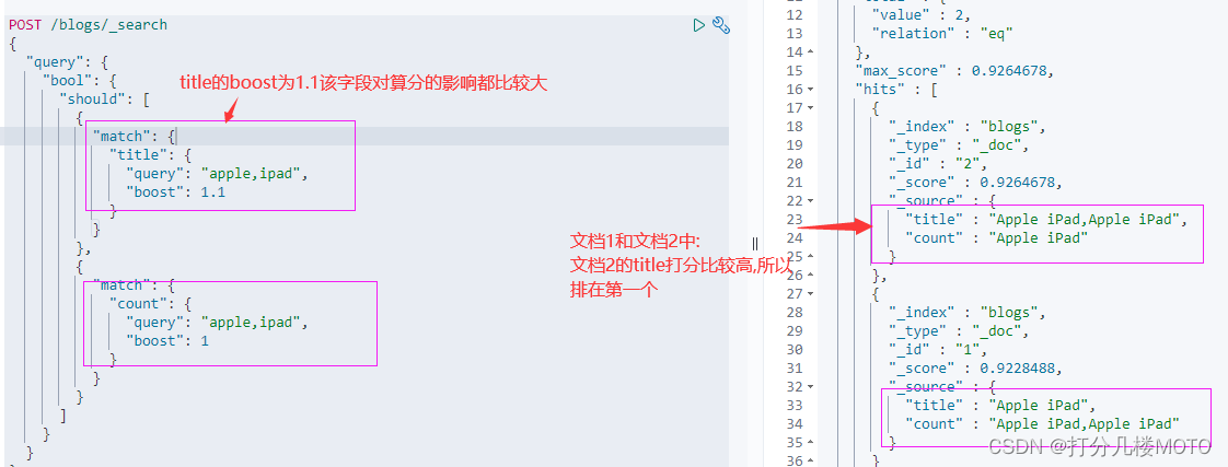 - 通过嵌套bool查询,可以改变对算分的影响
