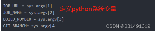 思路是找出jenkins的内置变量,将jenkins内置变量定义为python脚本系统变量(sys.argv[1]),运行脚本的时候将jenkins 几个变量按顺序穿给脚本输出。所有项目可以共用一个脚本
