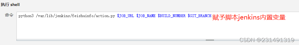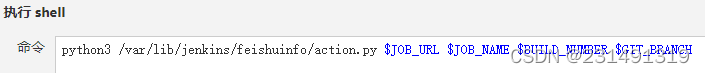 python3 /var/lib/jenkins/feishuinfo/feishutongzhi.py $JOB_URL $JOB_NAME $BUILD_NUMBER $GIT_BRANCH
