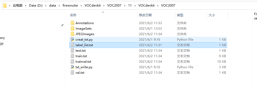 文件夹内,运行create_txt.py将会在Main文件夹内生成trainval.txt、train.txt、val.txt、test.txt四个txt文件。