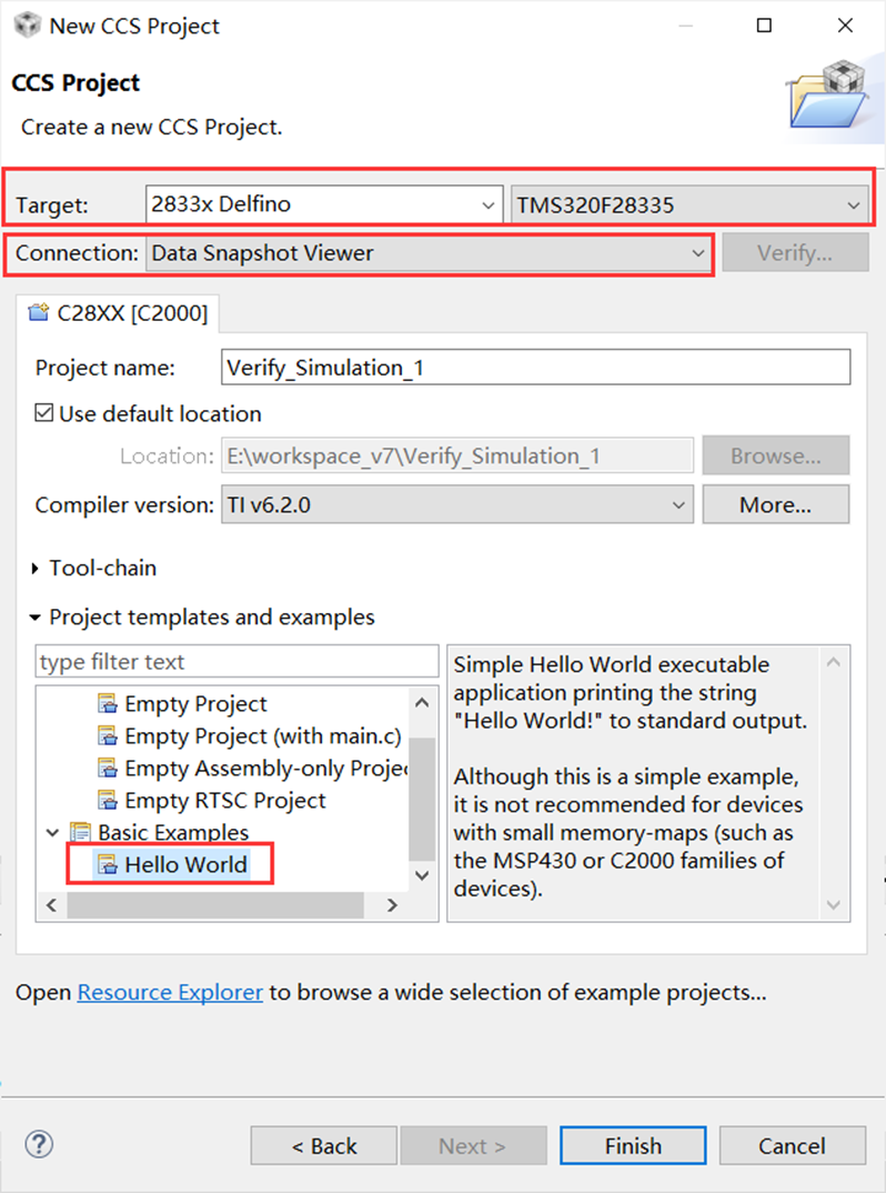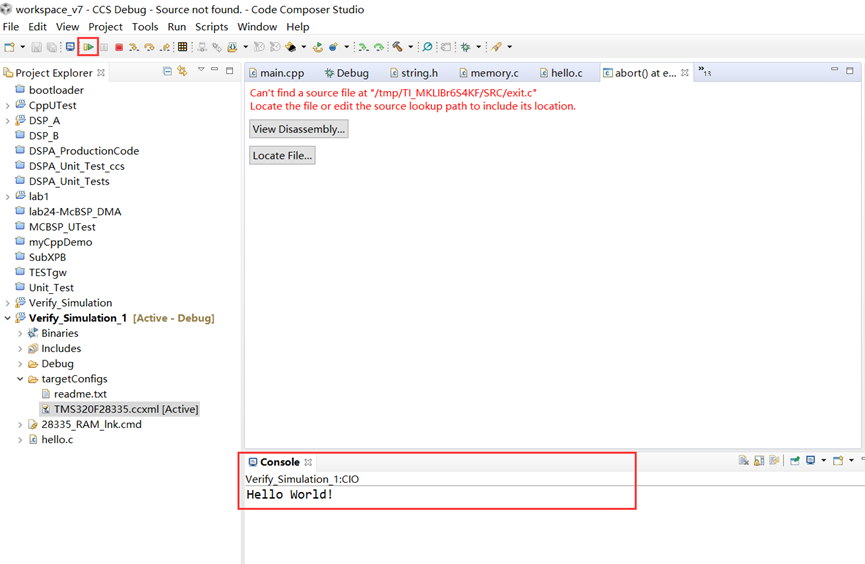 CCS 5.5以上版本(以7.4版本为例)添加软件仿真功能,并打印Hello World进行验证。