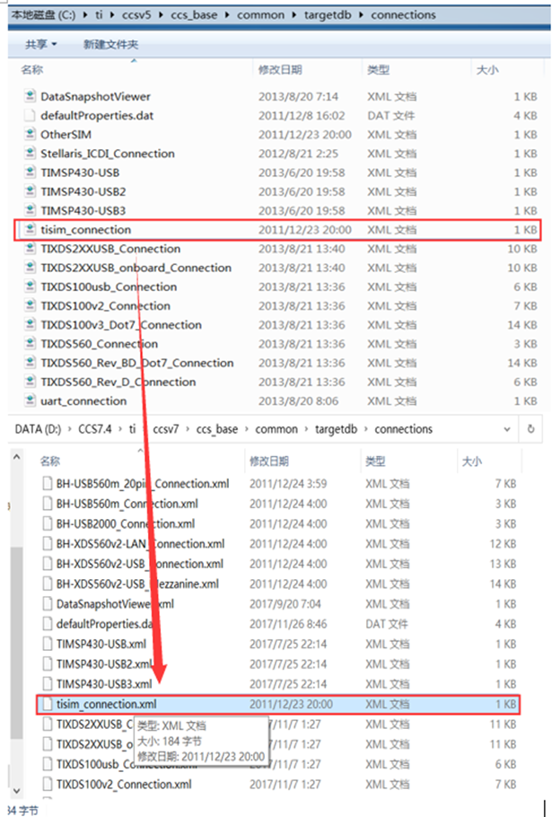 :将仿真文件中的tisim_connection.xml复制到XXX\ccs_base\common\targetdb\connections\文件夹下: