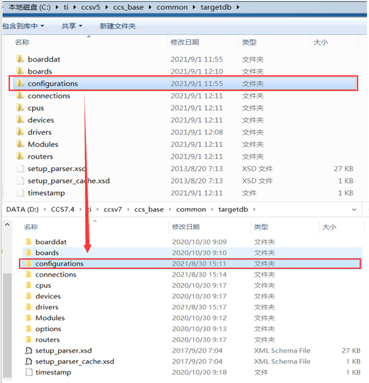 : ccs仿真文件下\configurations文件夹—复制到—ccs_v8\ccs_base\common\targetdb文件夹下