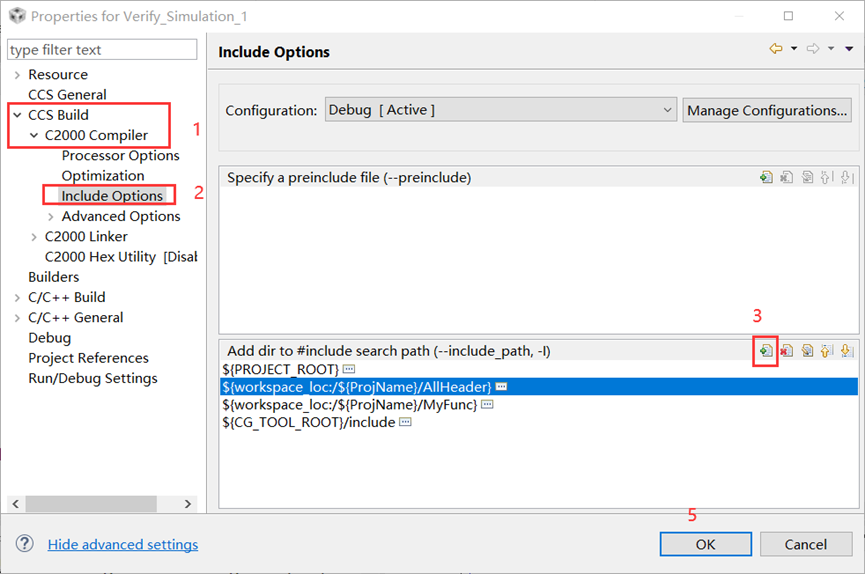 右击工程CCS BuildC2000 CompilerInclude Options。在添加路径的对话框下添加需要的头文件(AllHeader是需要的基本头文件,因此需要包含此路径。同理,如果你要写一些自己的头文件,那么也需要包含头文件所在的路径)