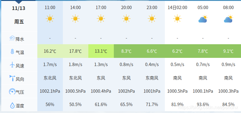 * 利用jsoup爬取气象局未来24小时的天气情况,温度,湿度,降水,风速,风向,气压
