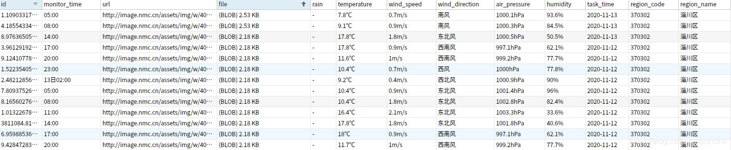 String sql = "INSERT INTO twenty_four_hour_weather(id,monitor_time,url,file,rain,temperature,wind_speed,wind_direction,air_pressure,humidity,region_name,region_code,task_time) VALUES (?,?,?,?,?,?,?,?,?,?,?,?,now());";