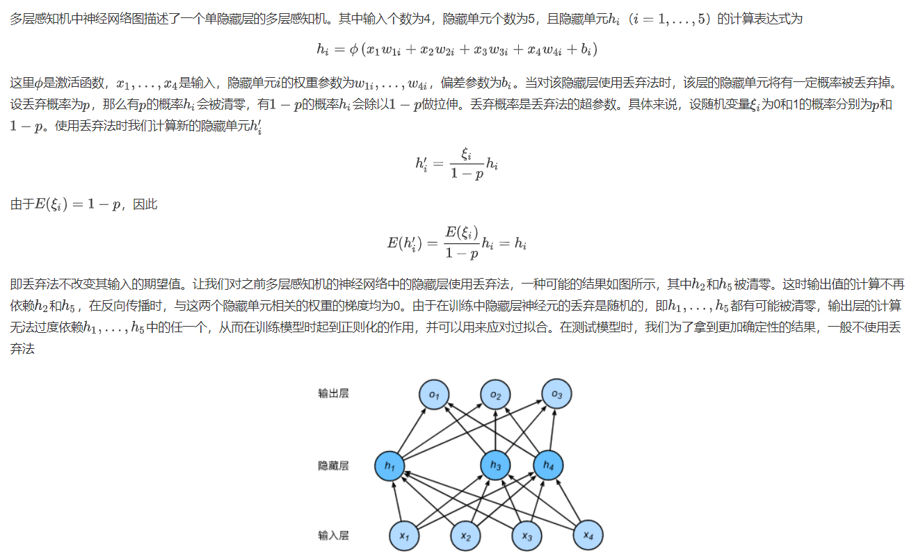 drop_prob1, drop_prob2 = 0.2, 0.5# 隐藏层有两层,所以设置两个丢弃率