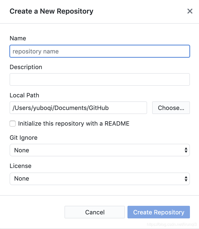 虽然这种方式是在本地建立仓库,但是也是可以通过客户端上传到GitHub上的,上传参数也可以选择上传后只限自己查看的隐私权限。