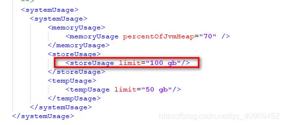 du -sh 查看khadb的大小有102GB,mq的activemq.xml中配置的为100GB限制。随后先将限制改为200GB,先保证系统正常