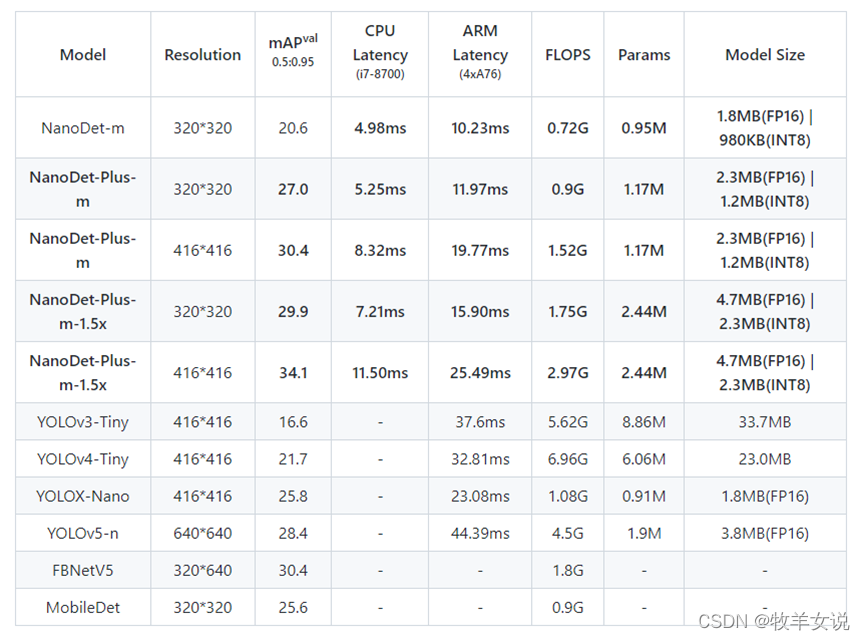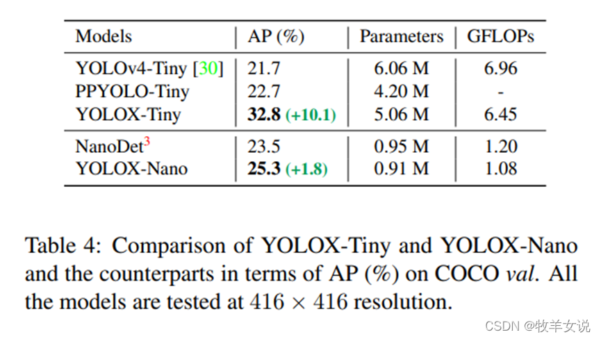 论文中给出了YOLOX-Nano与其他轻量级网络的对比。