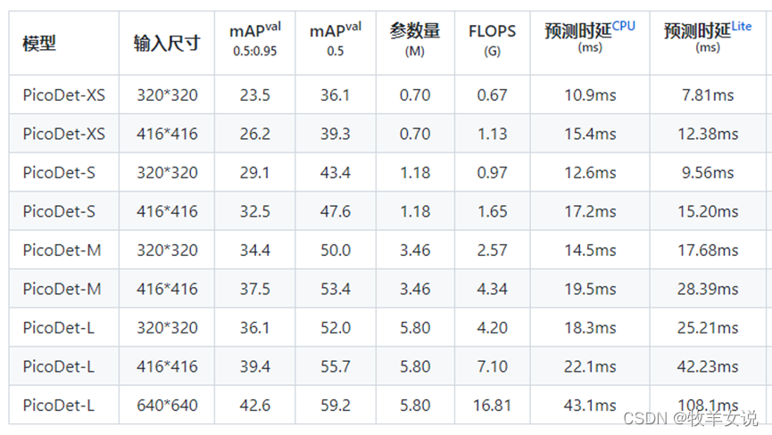 PP-PicoDet是基于百度PaddleDetection提出的面向移动端和CPU的轻量级检测模型,在移动设备上具有卓越的性能,成为全新的SOTA轻量级模型,并且一直在更新维护,最新的版本发布于2022年3月20日。