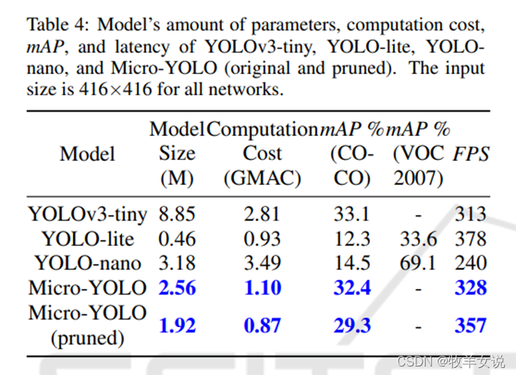 Micro-YOLO模型的参数量、乘加数可参见下表: