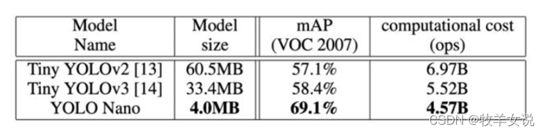 YOLO Nano与Tiny YOLOv2、Tiny YOLOv3的对比:
