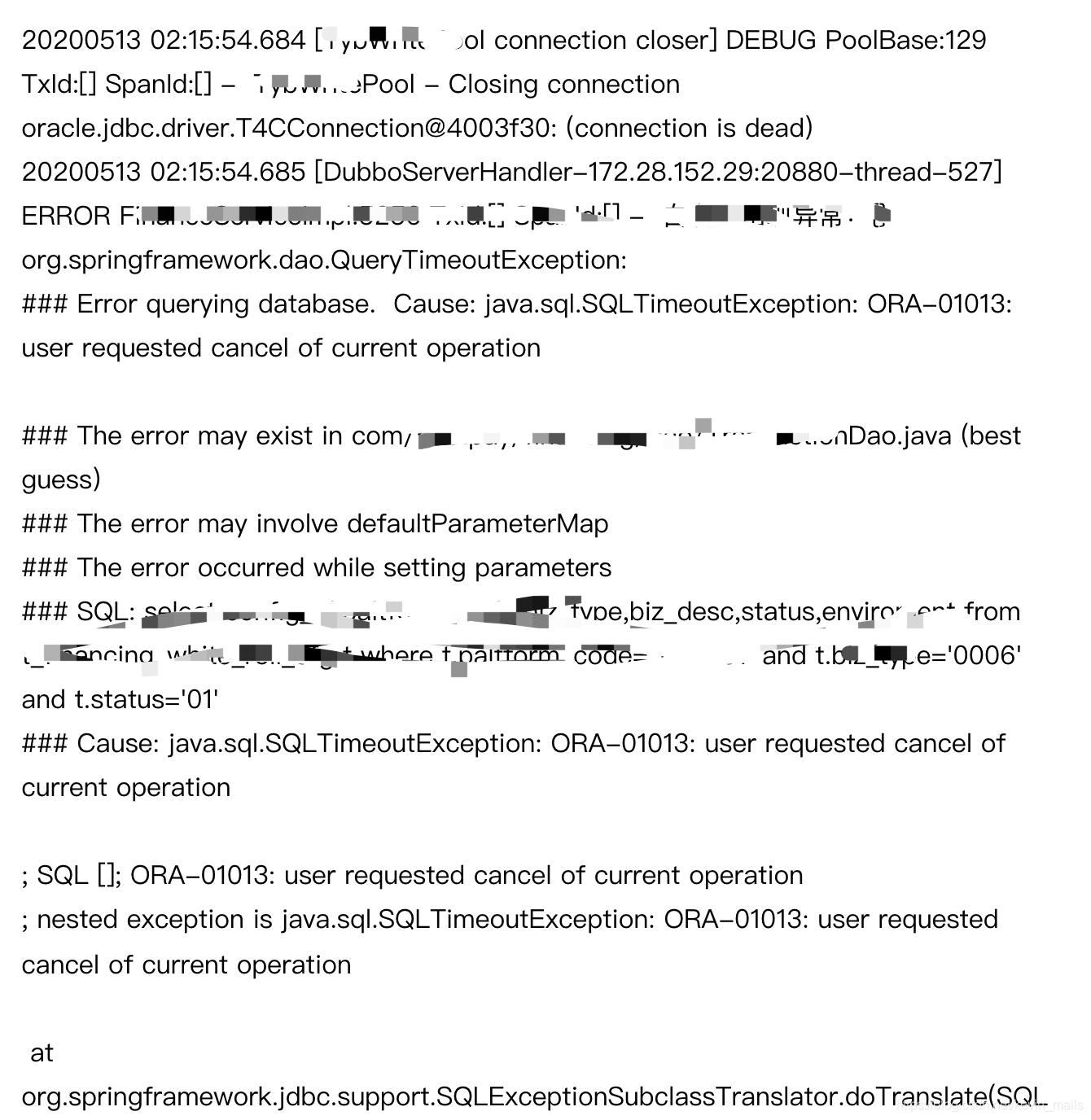 参数一加不得了,新错误又来了:java.sql.SQLTimeoutException: ORA-01013: user requested cancel of current operation