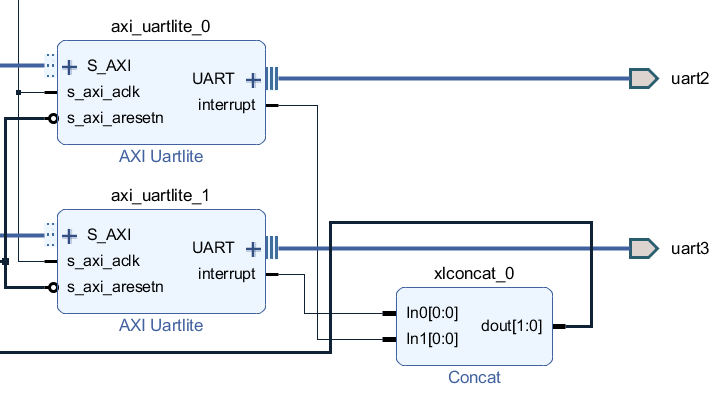 添加两个axi_uartlite后,在system中添加Concat IP核