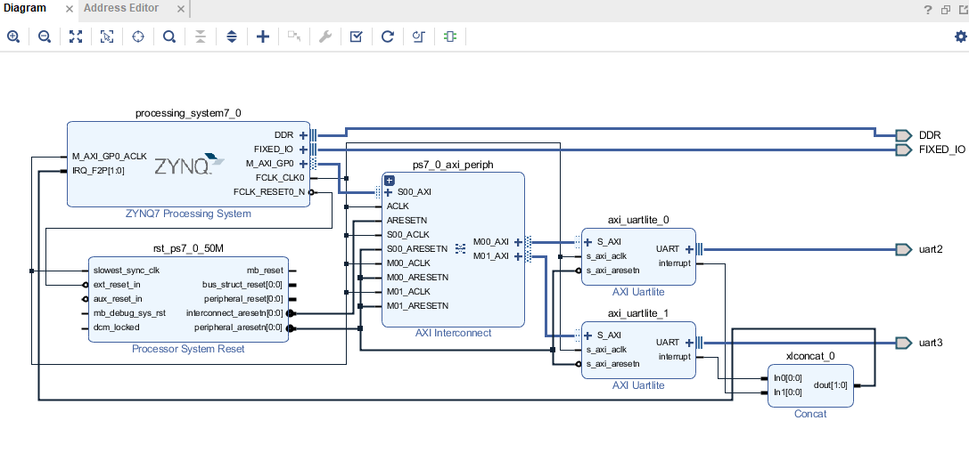 开发板环境:vivado 2017.4 ,开发板型号xc7z020clg400-1,这个工程主要功能是自定义两个axi_uartlite IP核,实现他们的中断接收。