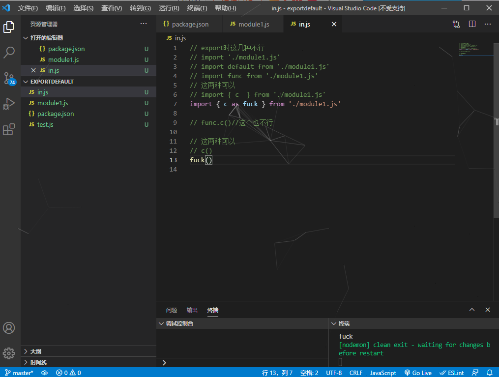 执行之后,会多出来一个pakcage.json文件,这时候如果你还无法模块化,那就看看这个文件里有没有type:module,没有就加上