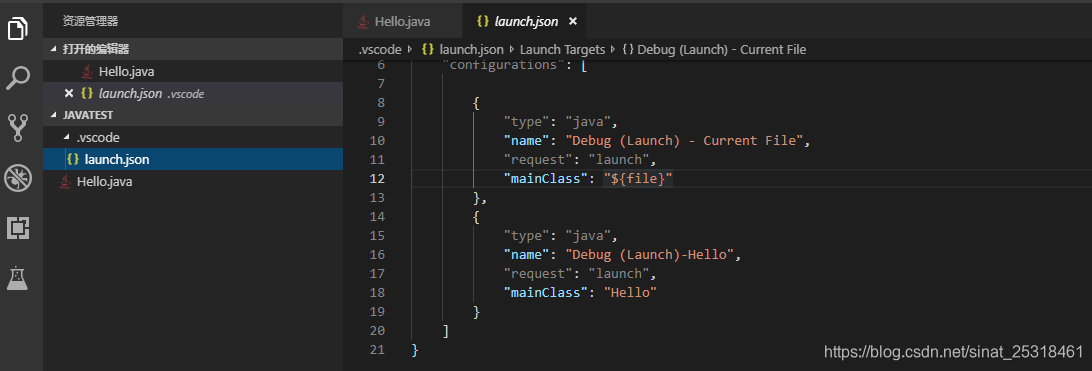 VSCode会自动生成launch.json文件,并把该类增加到配置文件中,我们需要指定mainclass即可。