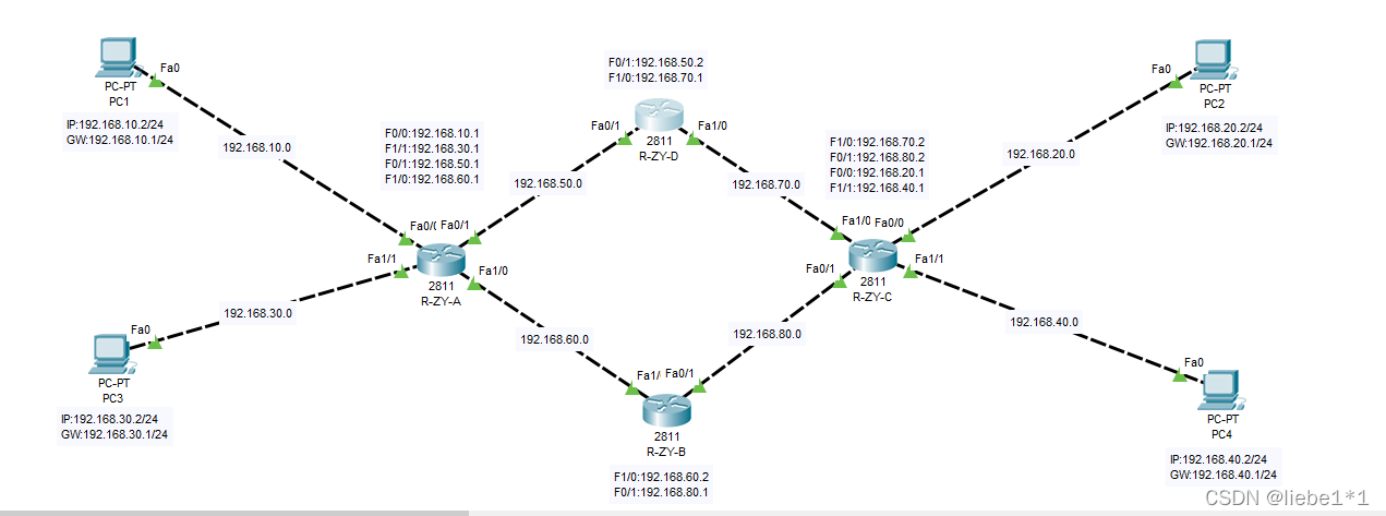R-ZY-C(config)#ip route 192.168.40.0 255.255.255.0 192.168.70.2