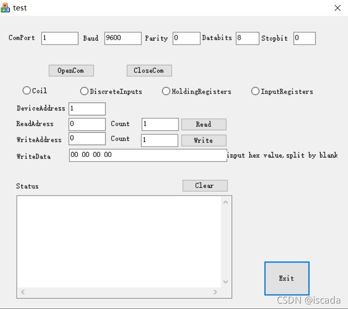 开发一个mobus调试助手,可以方便与目标设备进行通信测试,本例采用VC++自主开发一个modbus调试助手。对目标设备进行协议测试,简单方便。