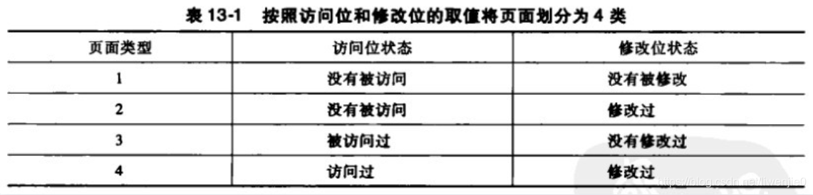 选择一个最近时间内没有被访问过的页面置换。实现方式是利用页面的访问和修改位。基于程序访问的时空局域性。