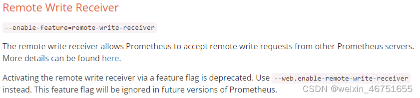 需要在核心server添加“–web.enable-remote-write-receiver”参数,允许远程web写入,此处允许的就是agent节点在yml中添加的远程写入,此处就用到了。