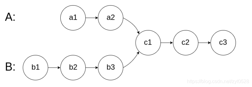 如下面的两个链表: