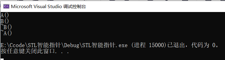 可以看到,所管理的对象在环形引用下也完成了资源的释放。成功解决了内存泄露的问题。我们通过构造和析构的过程对其进行分析。