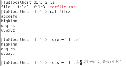 命令是显示文件结尾若干行内容。分别显示了指定行的文件内容。默认显示就是文件内容的前后