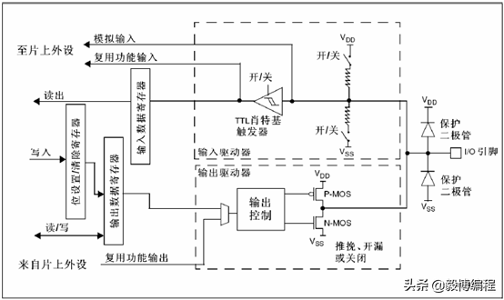 Stm32F103的GPIO端口的每个位可以由软件分别配置成多种模式: